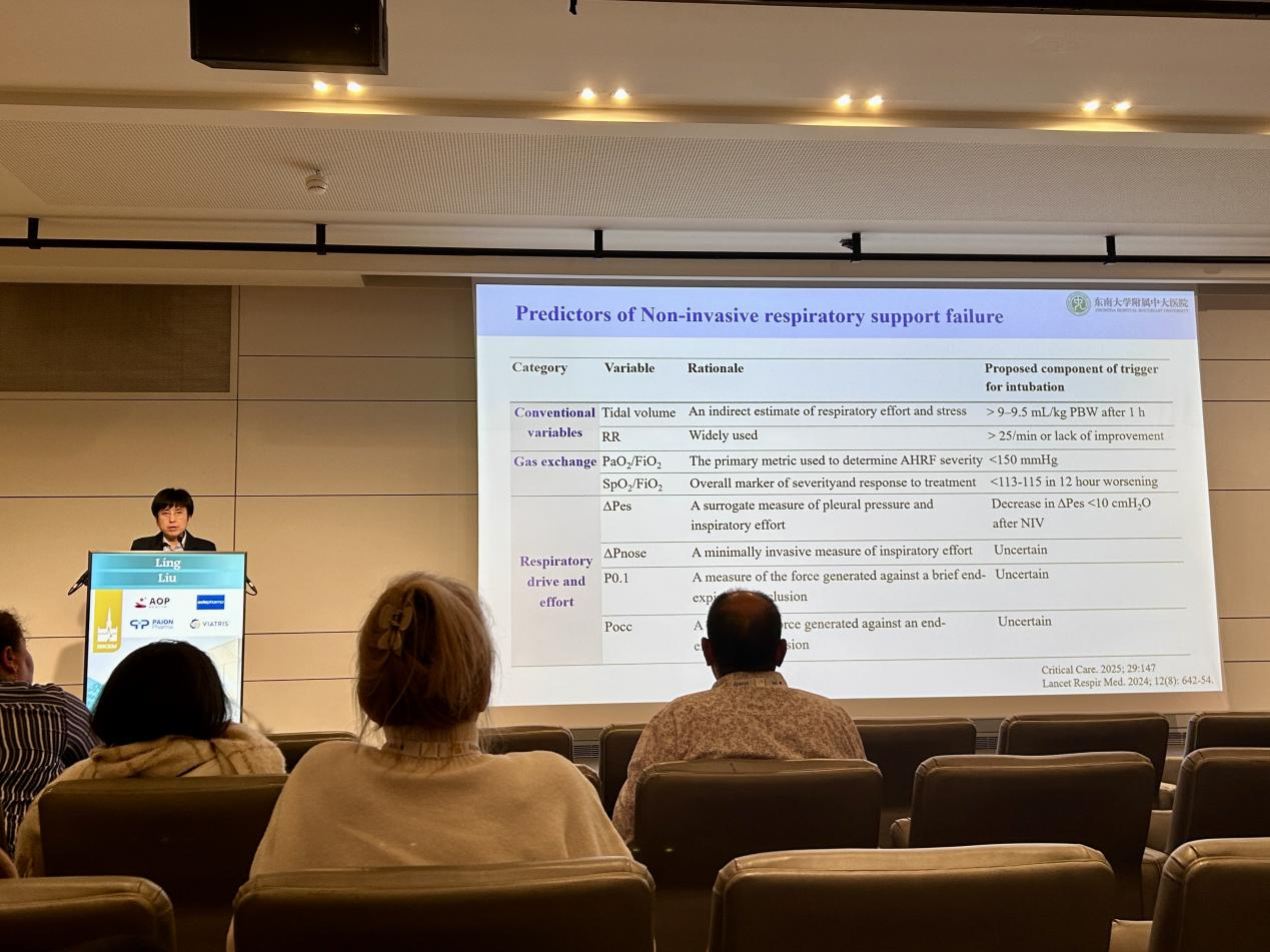 “无创呼吸支持”专场,她聚焦无创呼吸支持(NIRS)失败预测发表演讲,明确延迟插管对患者死亡率的负面影响,梳理预测指标演进历程,创新性提出“预测核心是风险预警而非直接决定插管操作”的学术观点,并探讨了机器学习的应用前景。两项成果均赢得国际专家高度认可,充分展现了中国学者的学术功底与风采。